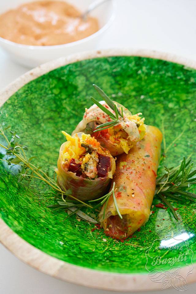 Przy pomocy wałka i papieru do pieczenia formujemy z kaszy podłużne blaty (20x8 cm, grubość około 1cm). Tak przygotowany spód zapiekanek pieczemy w 180 stopniach przez około 15 minut. Wyjmujemy i odstawiamy do wystygnięcia.