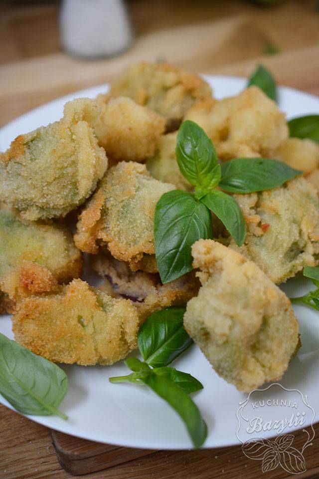 Na tak przygotowanych blatach układamy pomidory, brokuły, a także pokrojone w plastry, podsmażone pieczarki. Całość posypujemy startym żółtym serem. Pieczemy do piekarnika nagrzanego do 180 stopni na około 15 minut, do zrumienienia się sera.