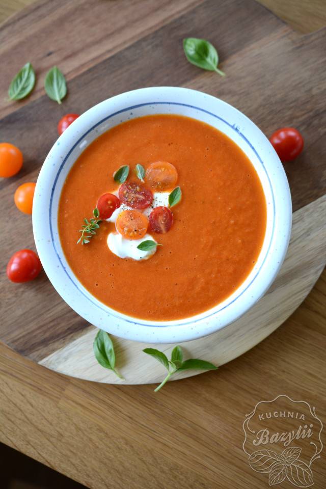 Zupa krem z pieczonych pomidorów to pyszne zwieńczenie lata. Skorzystajcie z sezonu i przygotujcie ten wspaniały krem. Zupa jest bardzo prosta w przygotowaniu, a także bardzo smaczna – słodko – kwaśna w smaku. Aromat letnich pomidorów jest genialny, a smak przepyszny. Jeśli posiadacie pomidory z własnej hodowli, koniecznie wykorzystajcie je do przygotowania tej zupy. Najlepiej połączyć ze sobą kilka odmian pomidorów, zarówno malinowych, śliwkowych czy koktajlowych.